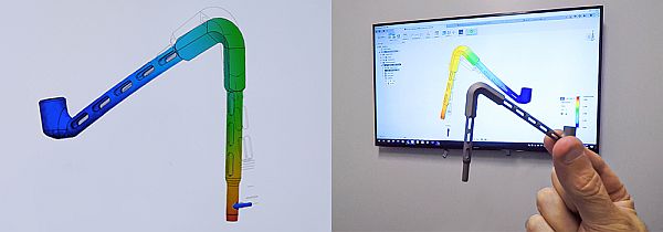 Conceived digitally in 3D CAD software and printed at Renishaw's Solutions Center in Ontario, Canada, an elegant Z-shaped stylus was produced as a single-piece monolithic construction with internal latticework to reduce its weight and avoid the risk of false triggers.