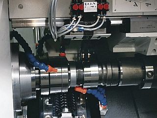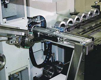 The KOEPFER CNC-Machine loading system, equipped with V-grippers, can hold workpieces up to 5 kg in weight, and forms the basis of the automation system. A number of blank and finished component magazines -- such as chain magazines, oscillating conveyors, and workpiece storage systems -- are available to cover a variety of components. A gravity-type loading rail with a conveyor belt for the unloading of components is the standard solution for this CNC-Machine.