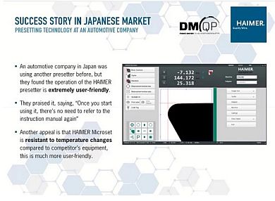 Summarizing the new level of partnership in Japan and globally, HAIMER Japan K.K. President Koichi Nosaka, points out advantages of proven HAIMER solutions for more process reliability and productivity on the shopfloor which manifested in recent Japanese customer success stories: